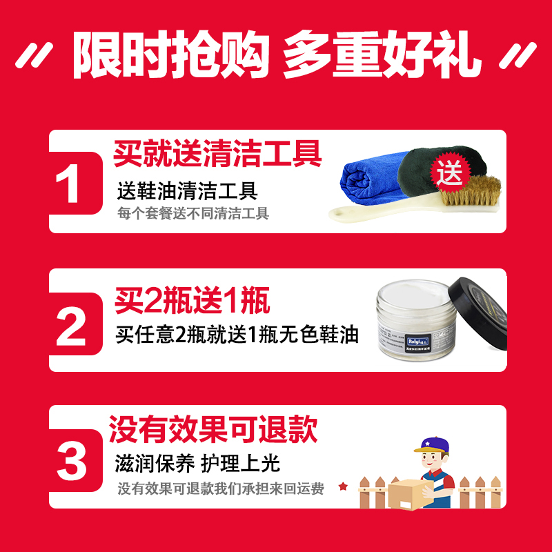 Colorless(universal for all colors of shoes) Black brown Colorless decontamination cream(large capacity) Black decontamination cream(large capacity) Brown decontamination cream(large capacity) Do not shoot out of stock