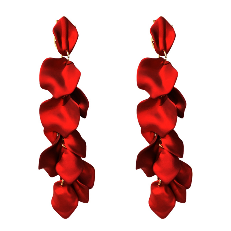 Silver Needle Sexy Rose Pels Long Earring Female European and American exaggerated net red temperament appears to be skinny ear crash tide