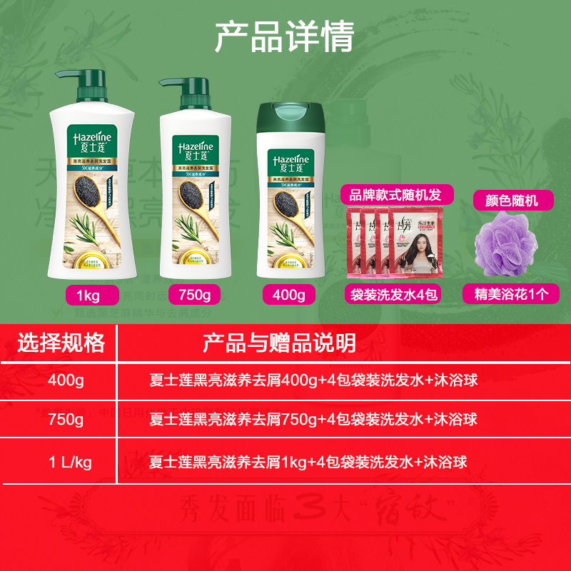 Summer lotus shampoo Black sesame Black bright nourishing anti-dandruff anti-itching 750g Long-lasting fragrance family pack official flagship
