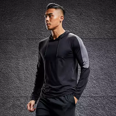 Tight men's summer running quick-drying long-sleeved equipment sports jacket spring and autumn training sweater hooded clothing fitness clothing