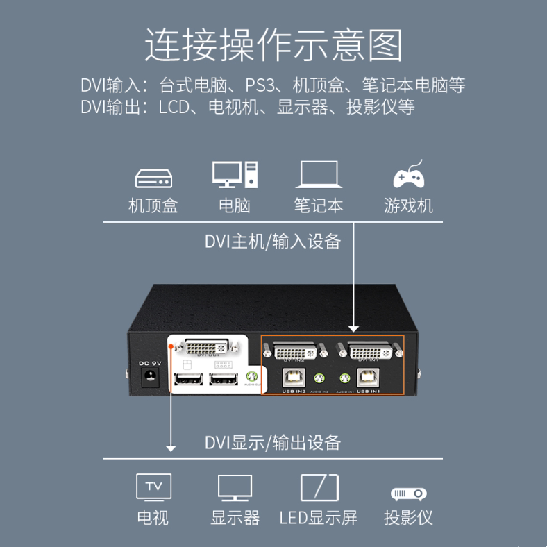 Maituo 2102DL 2-mouth DVI USB automatic KVM switcher 2 4 8-mouth DVI KVM switch-in-screen wiring