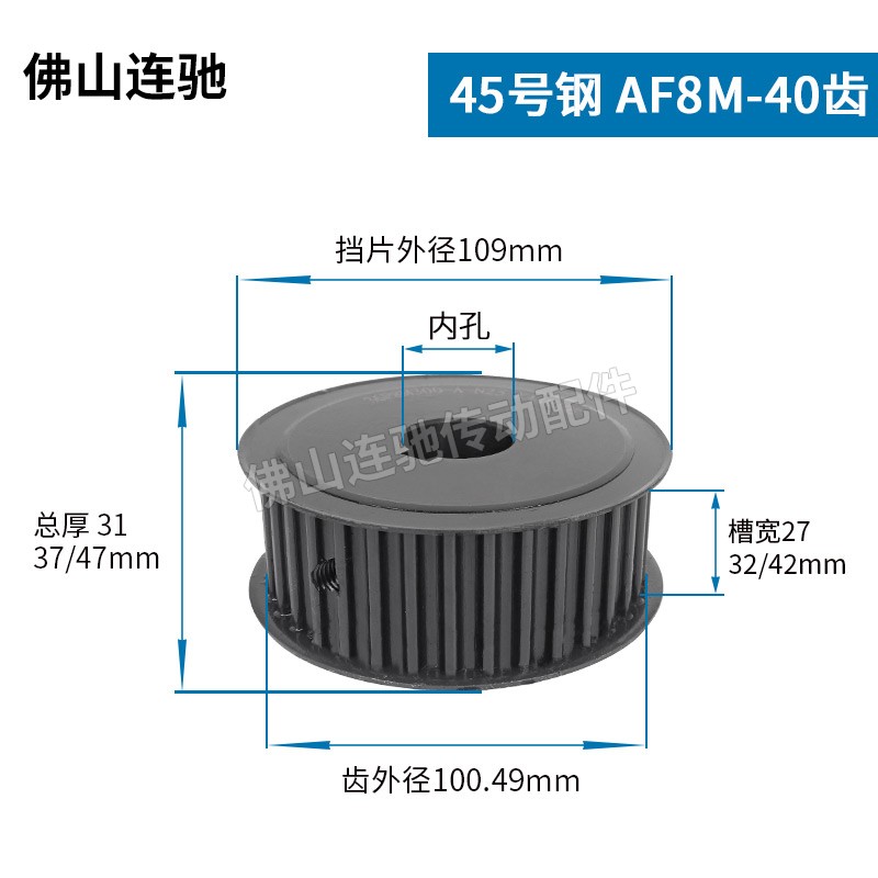 45 # steel 8M40 teeth T through hole synchronous belt pulley AF type slot width 27 32 42 52 52 hole 20-55mm-Taobao