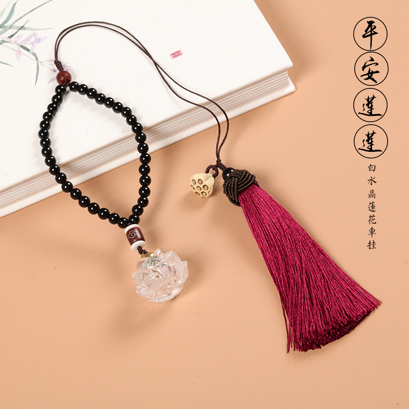 Natural white crystal lotus car rear mirror suspended pendant male and female upscale tire car fashion handmade