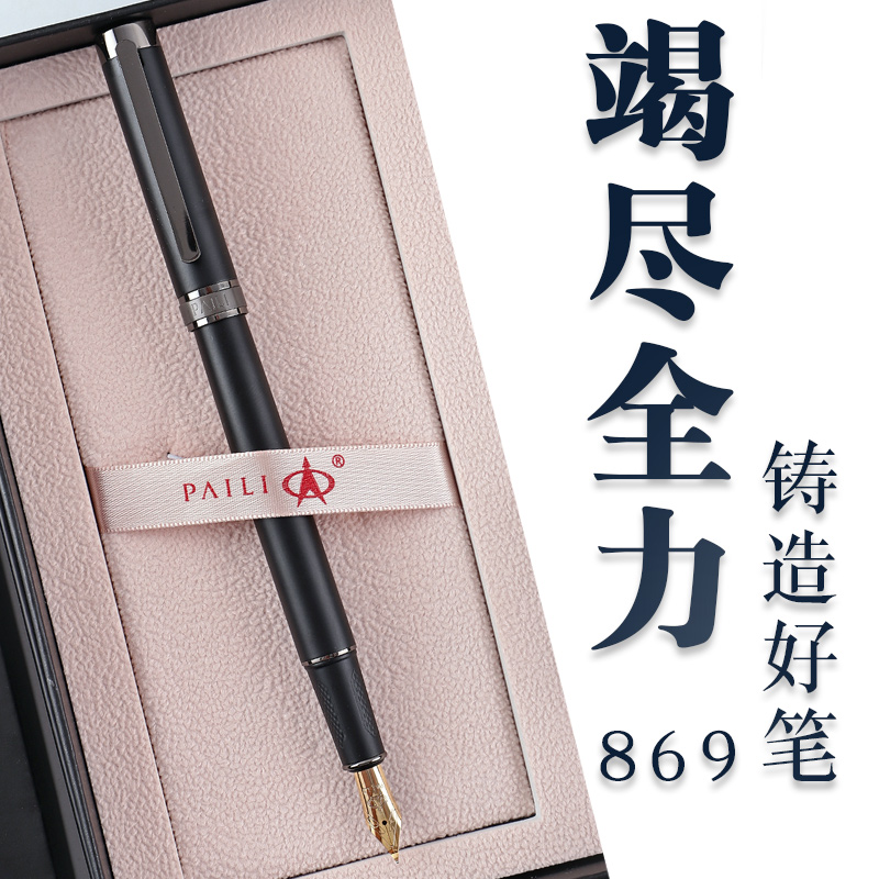 Pailey Flagship Store 869 Men's Business Office Black Signature Special Fine Bend Sharp and Ink Gift Set Enterprise Commemorative Customized Free lettering Teacher's Day Gifts 50 Ink Bags