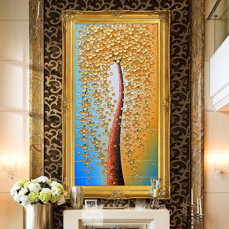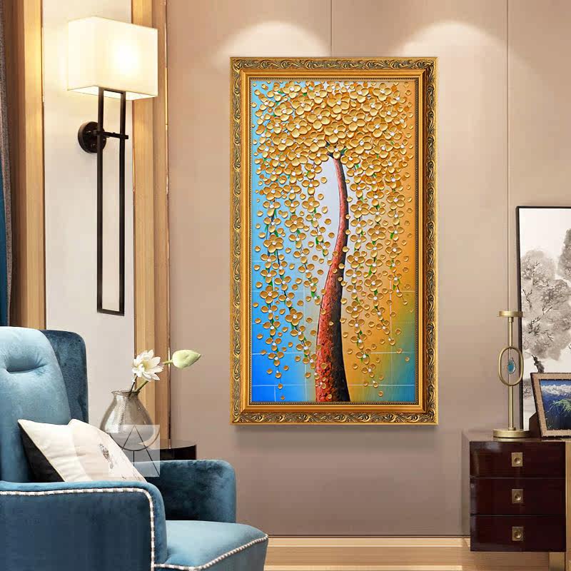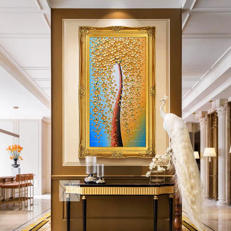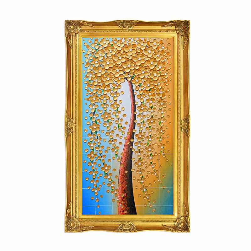 Yishuo European style entrance pure hand-painted oil painting thick oil knife painting vertical corridor aisle hanging painting gold fortune tree