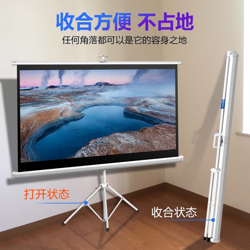 Qianchu projection screen high-definition portable floor-to-ceiling thickened triangle bracket home projector screen 100 inches 120 inches vertical outdoor manual lift movable projector screen