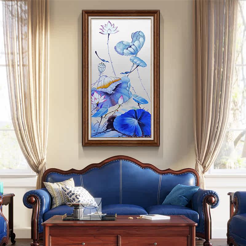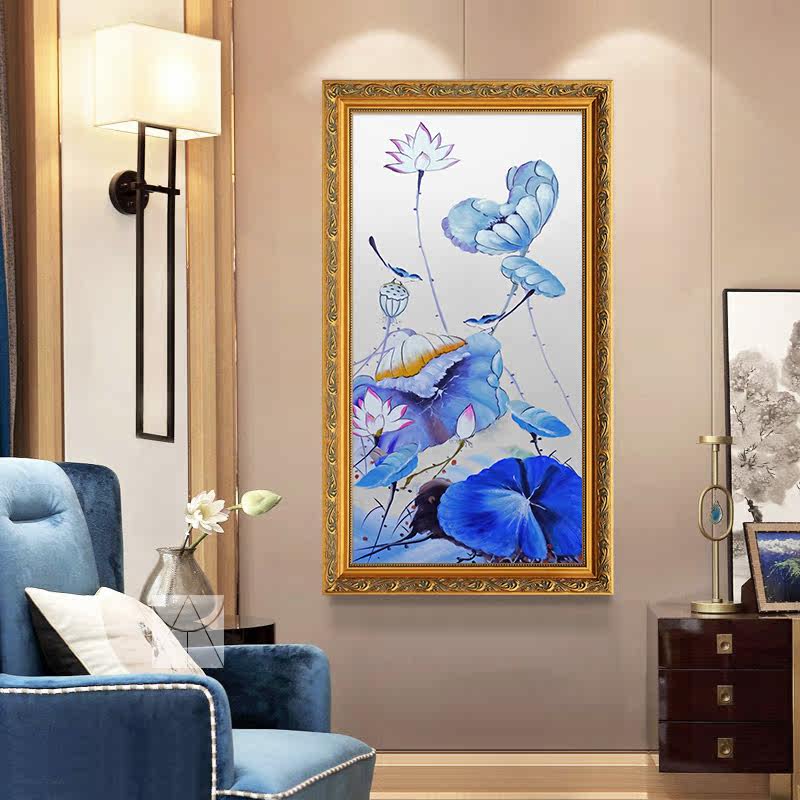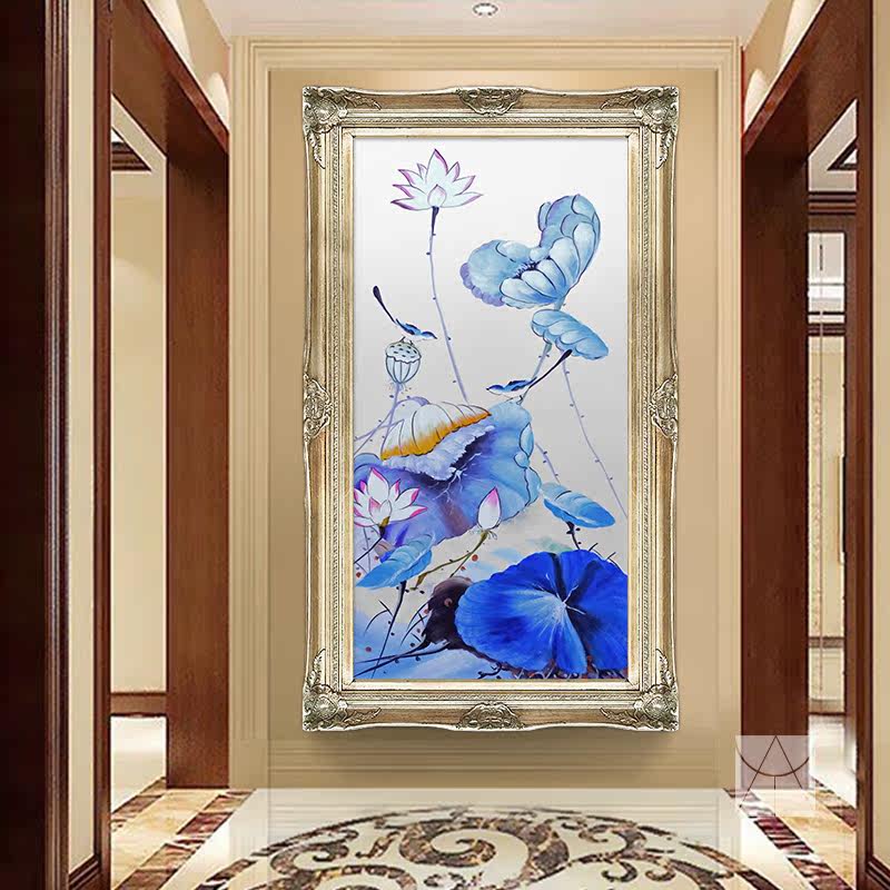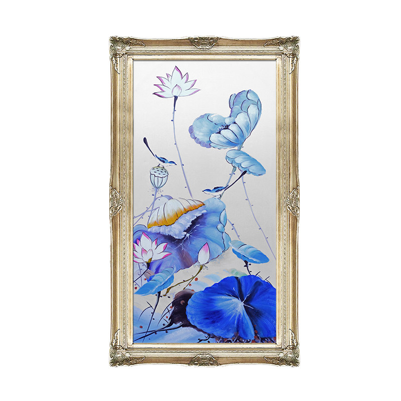 Yishuo New Chinese porch pure hand-painted oil painting corridor aisle home hanging painting porch mural lotus rhyme