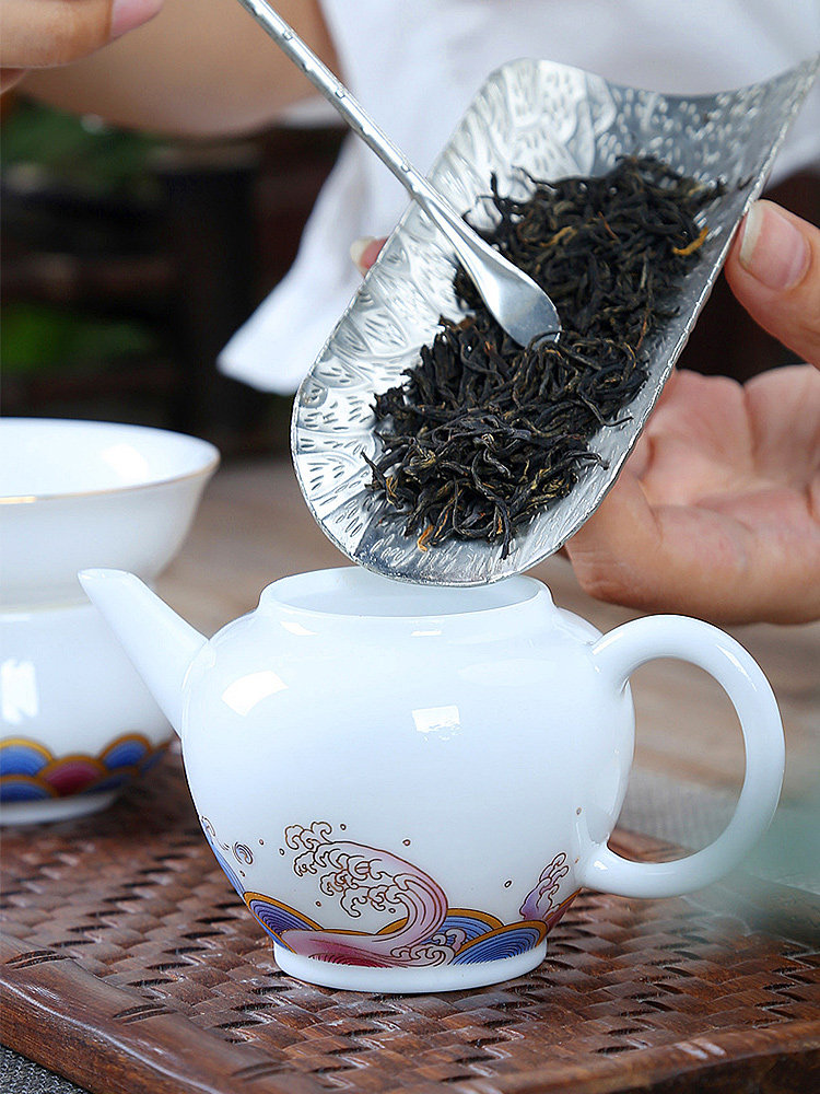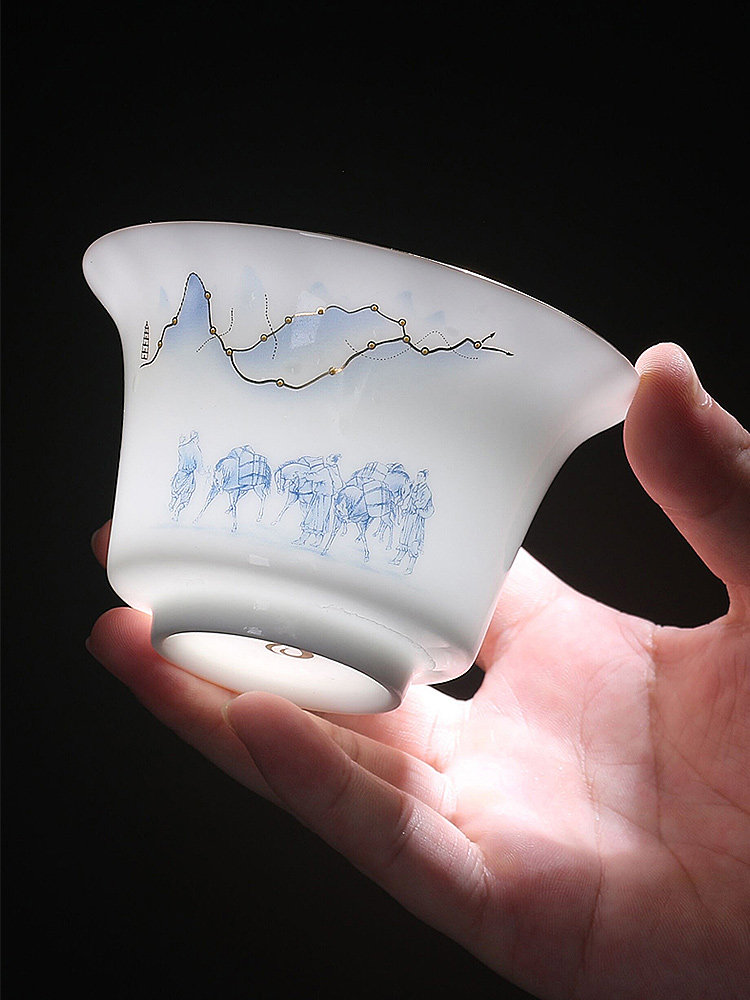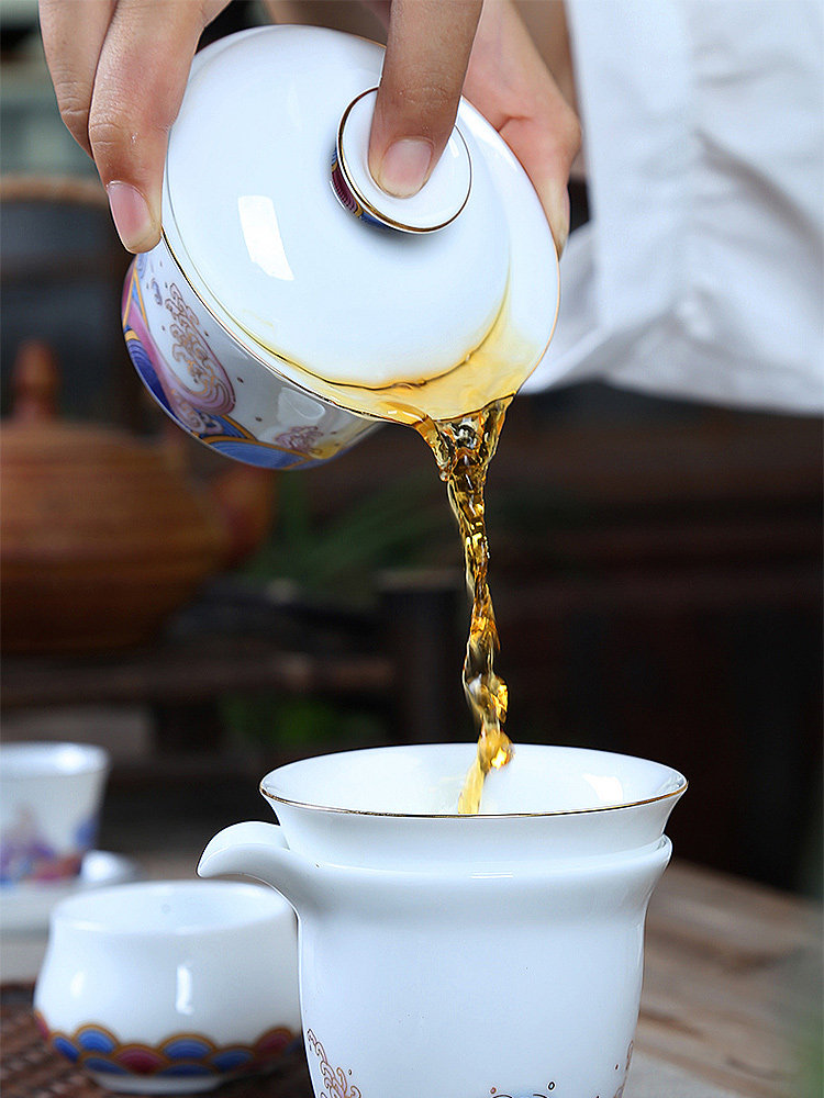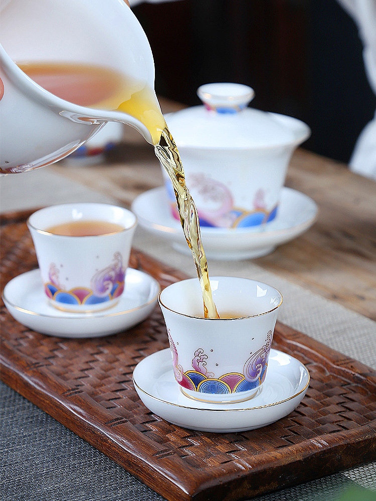 10-head Suet Jade Silk Road Covered Bowl High Cup Set 13 Suet Jade Riding the Wind and Waves Beauty Pot Tall Cup Set 13 Suet Jade Riding the Wind and Waves Fang Yun Pot Short Cup Set 10 Suet Jade Cheng