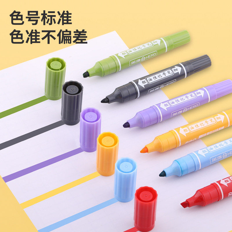 Hero 880 Mark Pen 12 24 24 36 48 48 Oily Pen Large Double Head Color Mark Pen Black Macpen Pop Poster Hook Thread Student Children's Painted CD Glass Metal Not Off Color