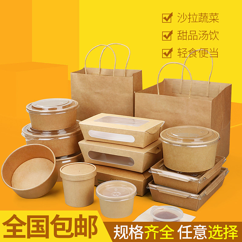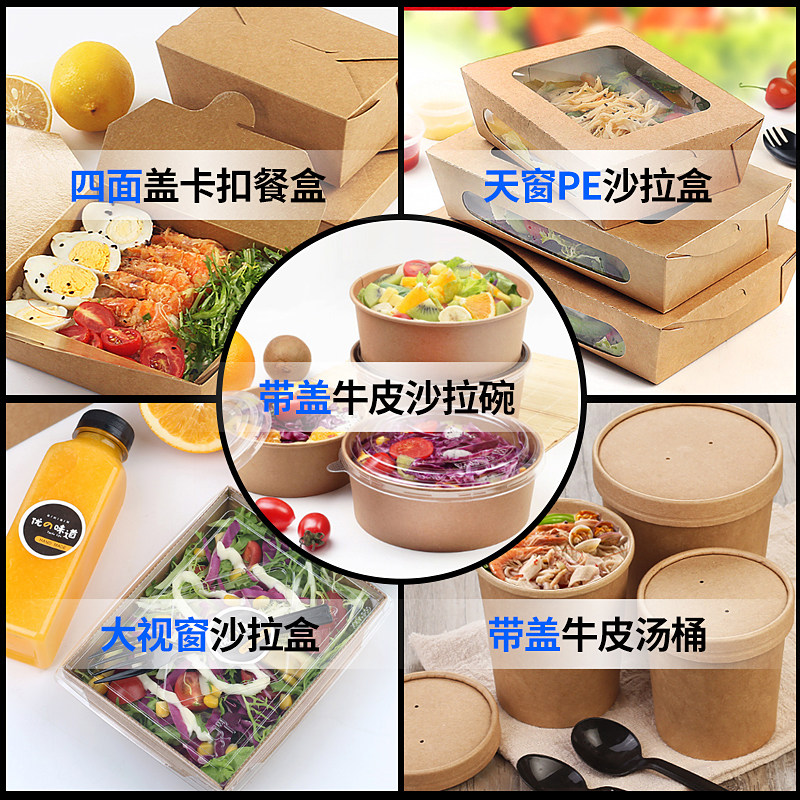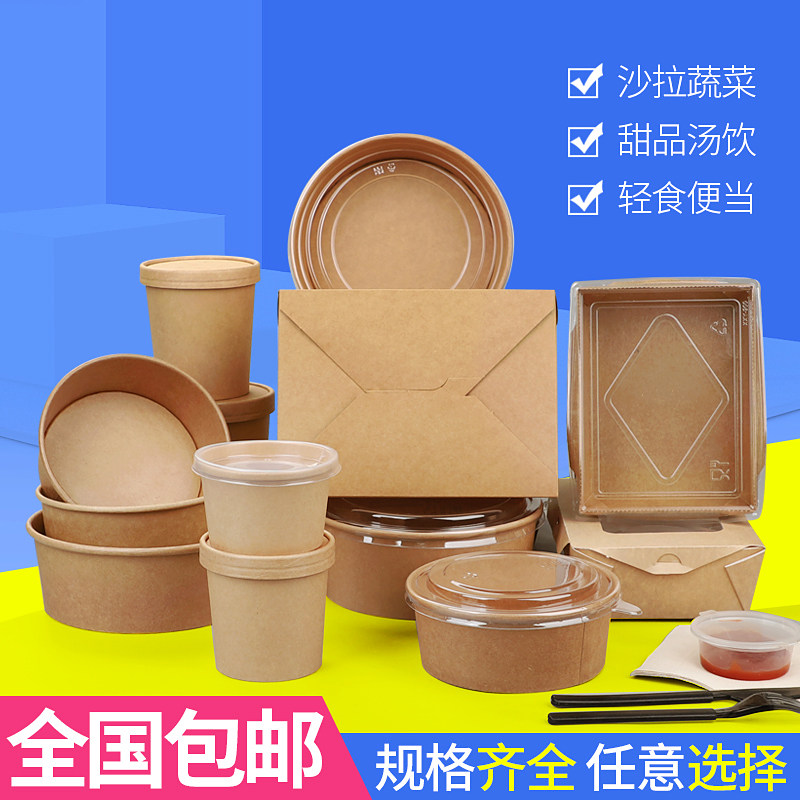 Disposable Packaging Box Kraft Paper Bowls Outside of Round Paper Meal Kit Paper Lunch Box Fruit Salad Pack Bowls Customised