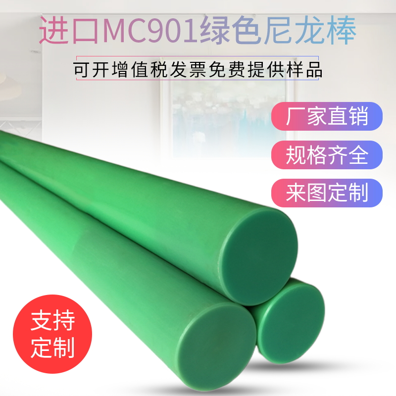 Green nylon stick solid cylindrical abrasion resistant and high temperature resistant processing custom cut Korea imports MC901 plastic stick