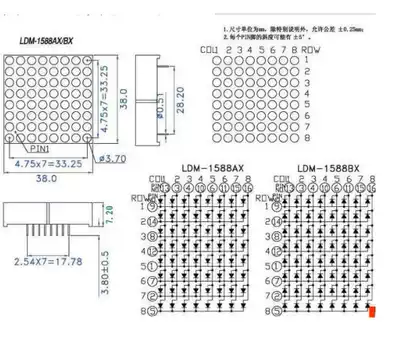 3 75MM 8*8 LED red bright dot matrix module 1588AS Yin 1588BS total Yang 16 feet