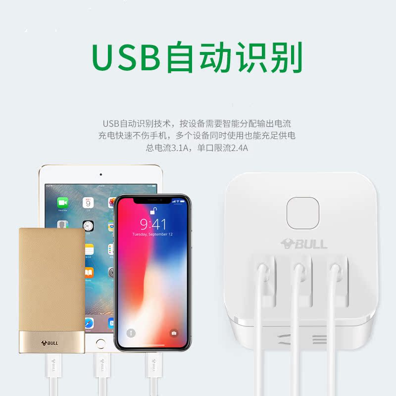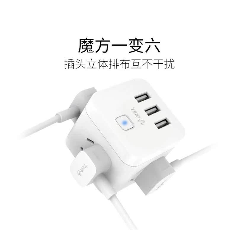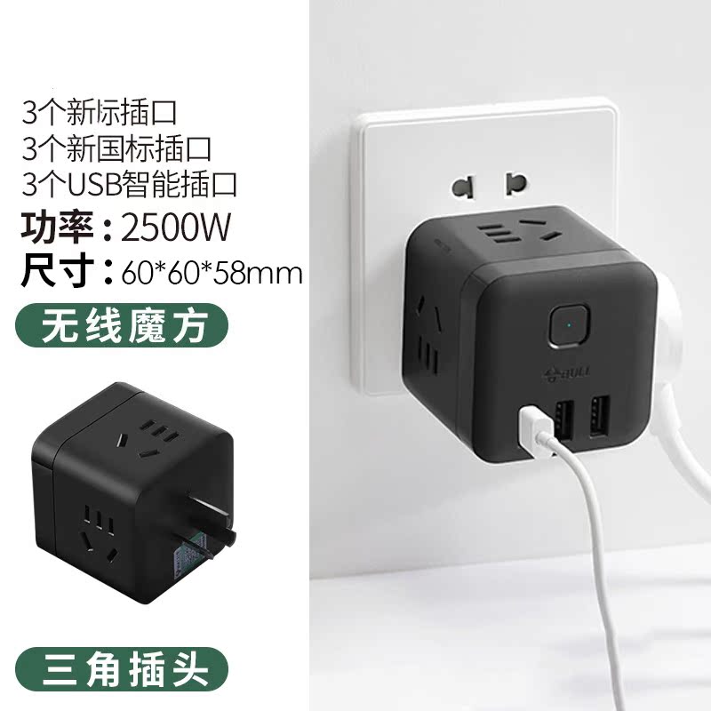 Bull Magic Square Cube Socket USB Creative Grinding Square Socket Tug Multifunction Without Wire Extension Cord Black