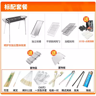 Original large padded home barbecue outdoor field charcoal grill full set of carbon barbecue stove tools