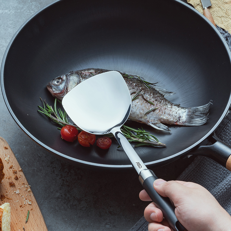 Love Shida 304 Stainless Steel Pan Shovel Home Fried Vegetable Shovel Kitchenware Iron Vegetable Shovel Long Handle Integrated Fish Shovel