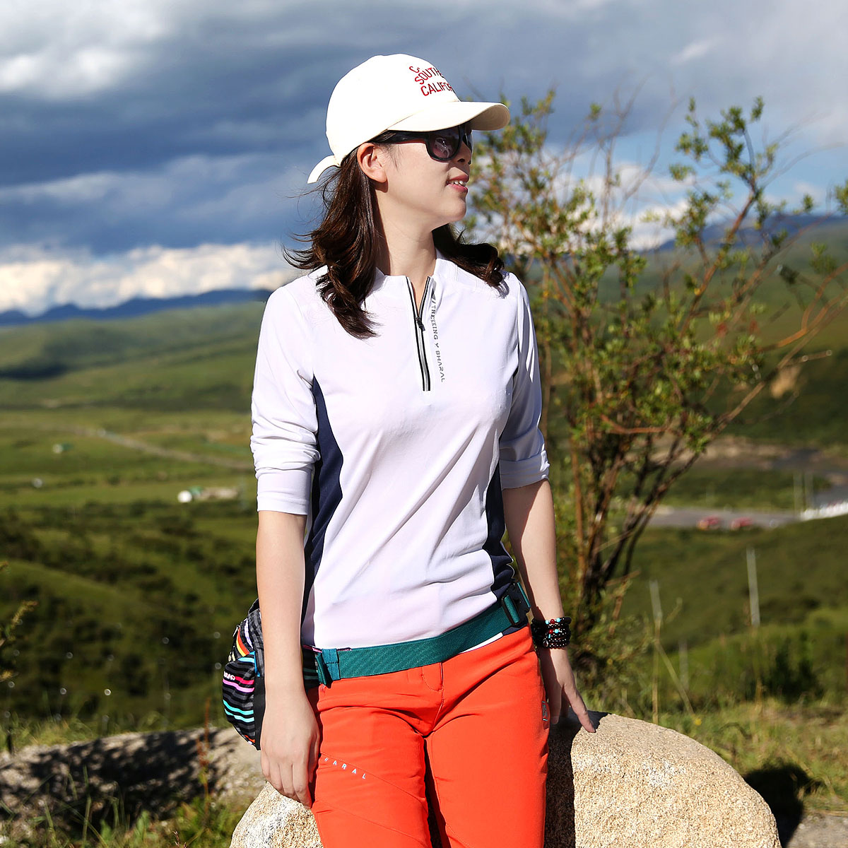 Snowshoo Island outdoor new collage stand-up collar speed dry clothes casual T-shirt Fast dry clothing hiking mountaineering with long sleeves women