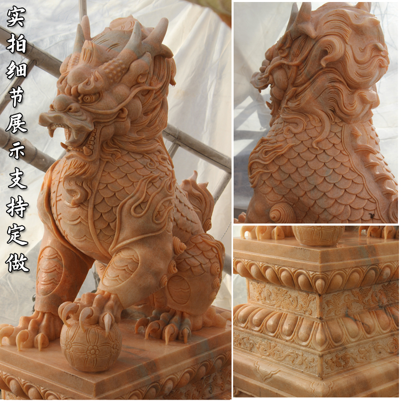 Stone sculptures Kirin a pair of green stone doorways swing pieces home patio See door leopard Large Late Xia red Han white jade stone