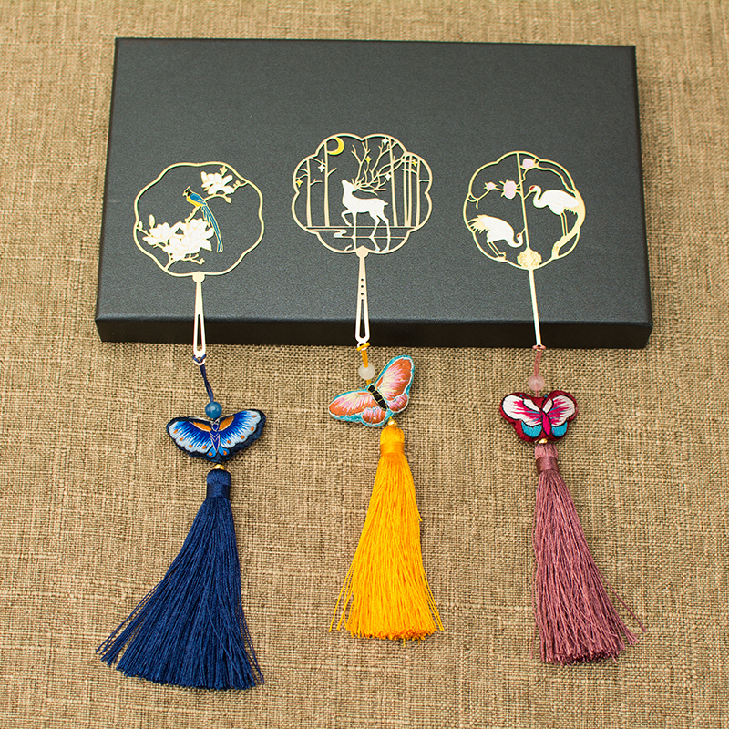 Silk Embroidered Handkerchief Handmade Suzhou Embroidered Handkerchief Embroidered Brass Bookmark Suzhou Embroidered Beauty Business Accompanying Hand Gift Set