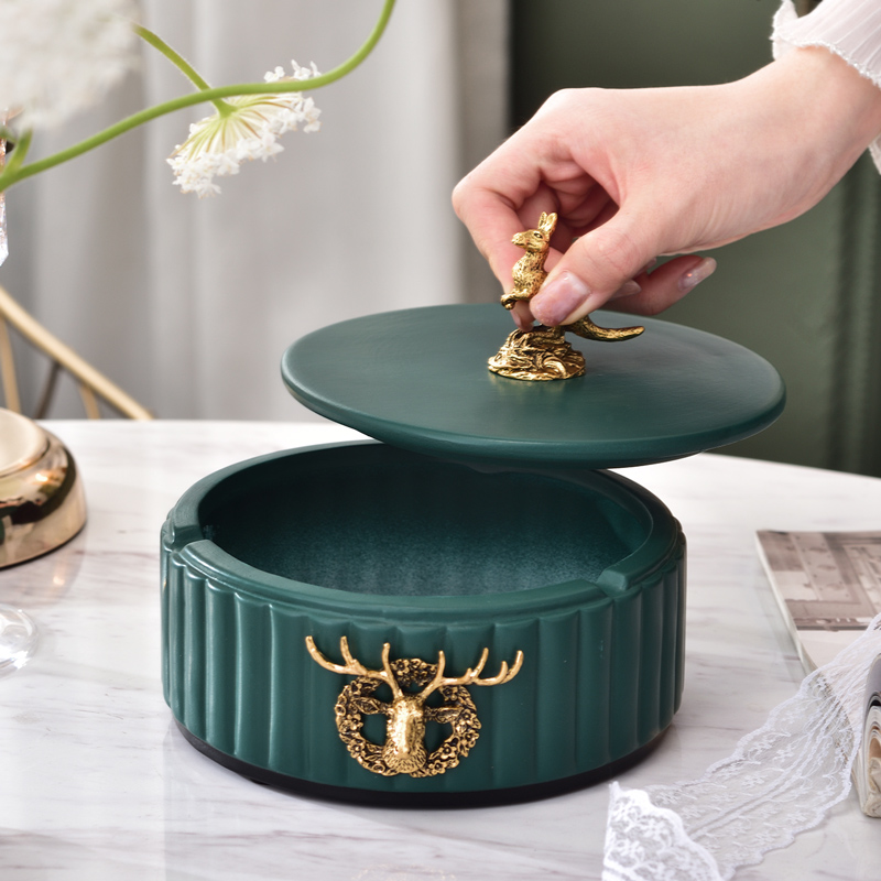 New Chinese-style ashtray anti-flying ash creative personality trend home living room ashtray large with lid European light luxury style