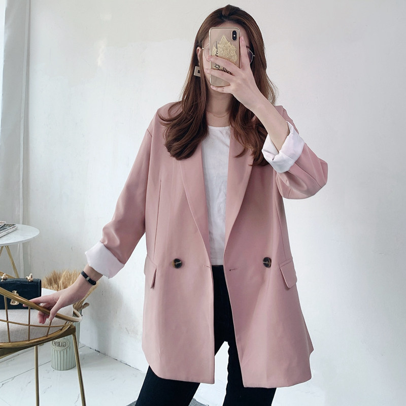 Star same style suit jacket female 2020 spring and autumn Korean version new loose and versatile pink net red small suit jacket