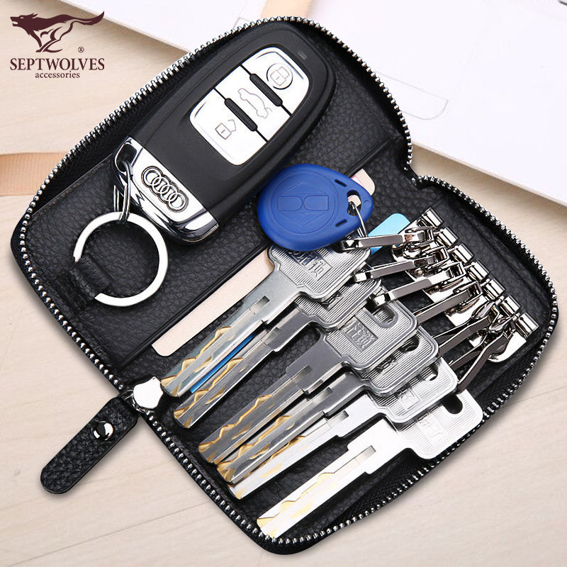 Septwolves car key bag men's leather large-capacity storage key bag card bag two-in-one small bag key bag cover