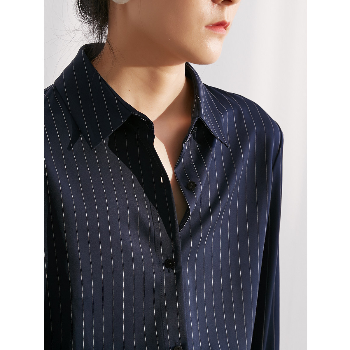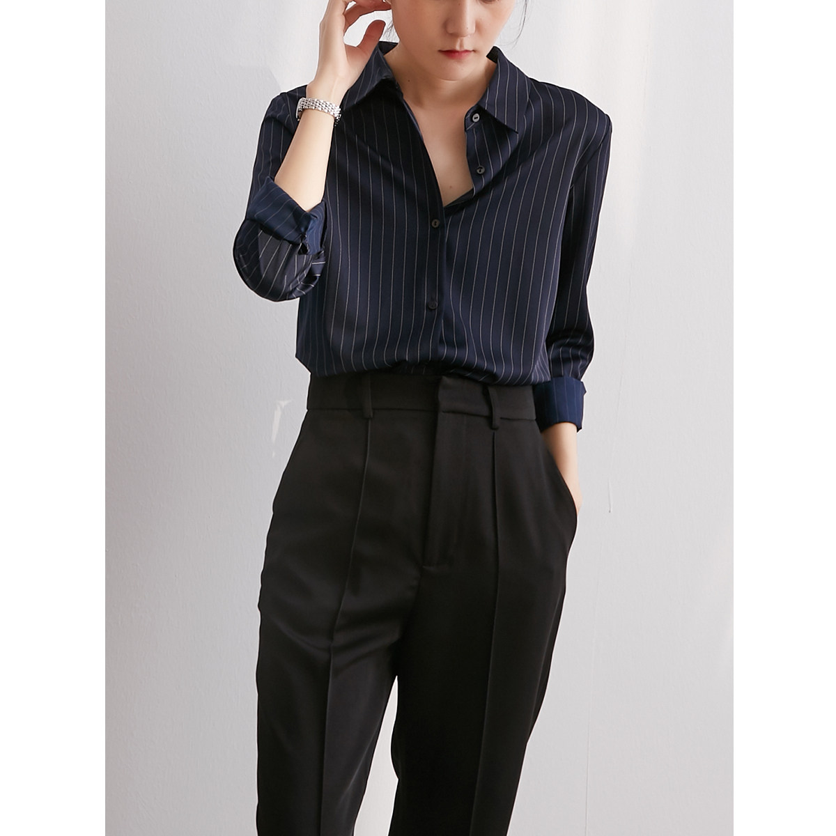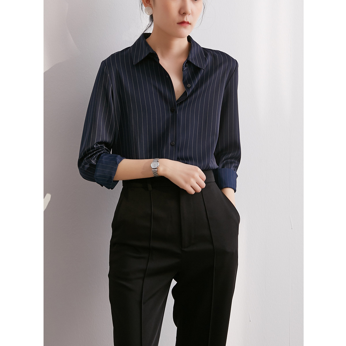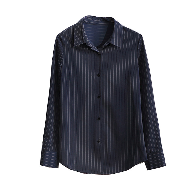 SS STUDIO shirt female design sense niche temperament professional blue commuter vertical stripe long-sleeved shirt spring