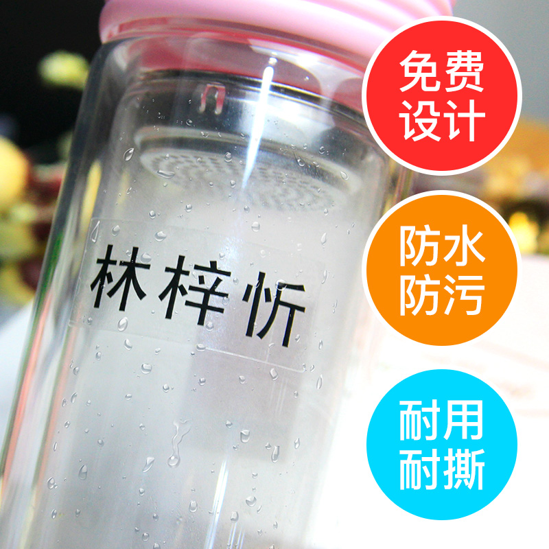 Student transparent name sticker paper custom waterproof name water cup children label customized to kindergarten baby seam