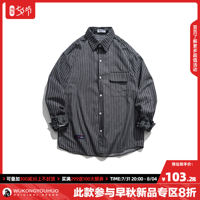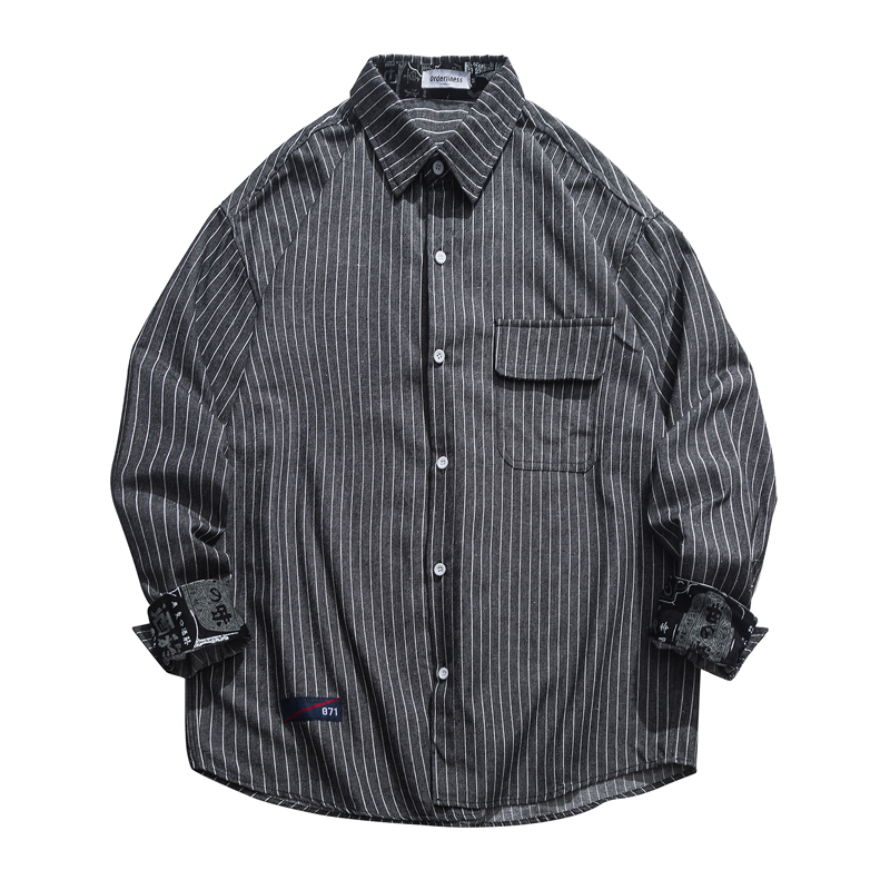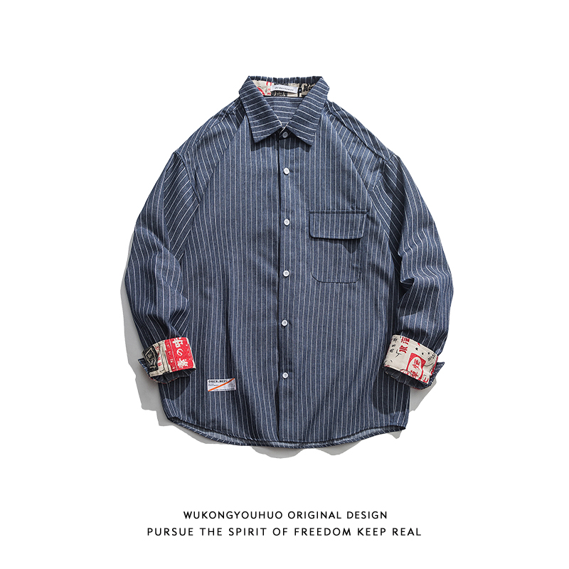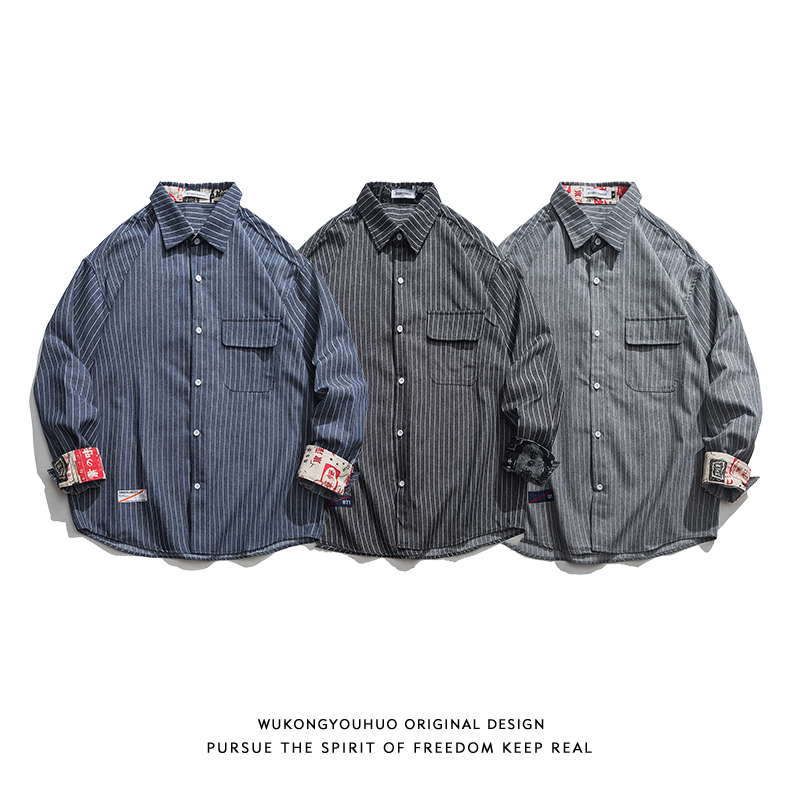 Epiphany with stock autumn new days retro harp streak long sleeve shirt male ochre loose street lovers shirt tide