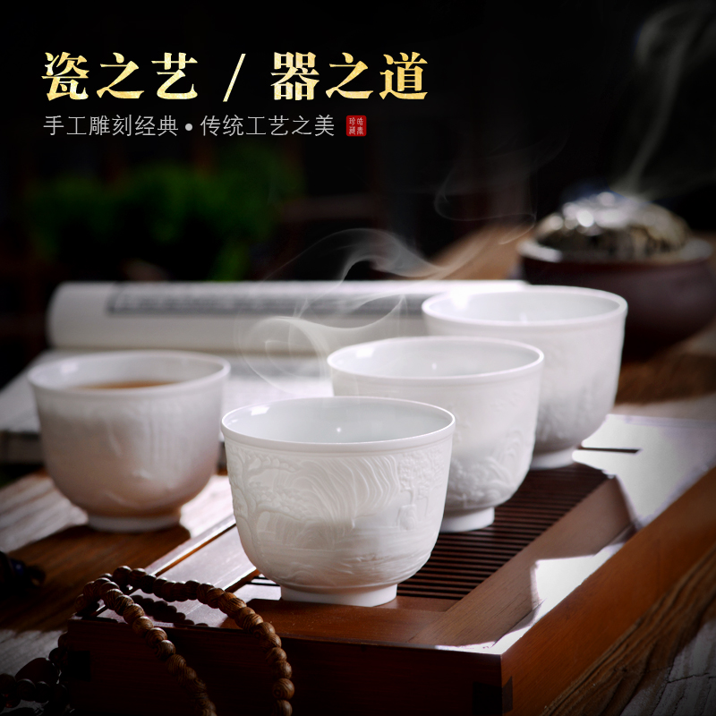 Jingdezhen ceramics all hand-painted carved master cup kung fu tea cup tasting cup personal cup single cup small tea bowl