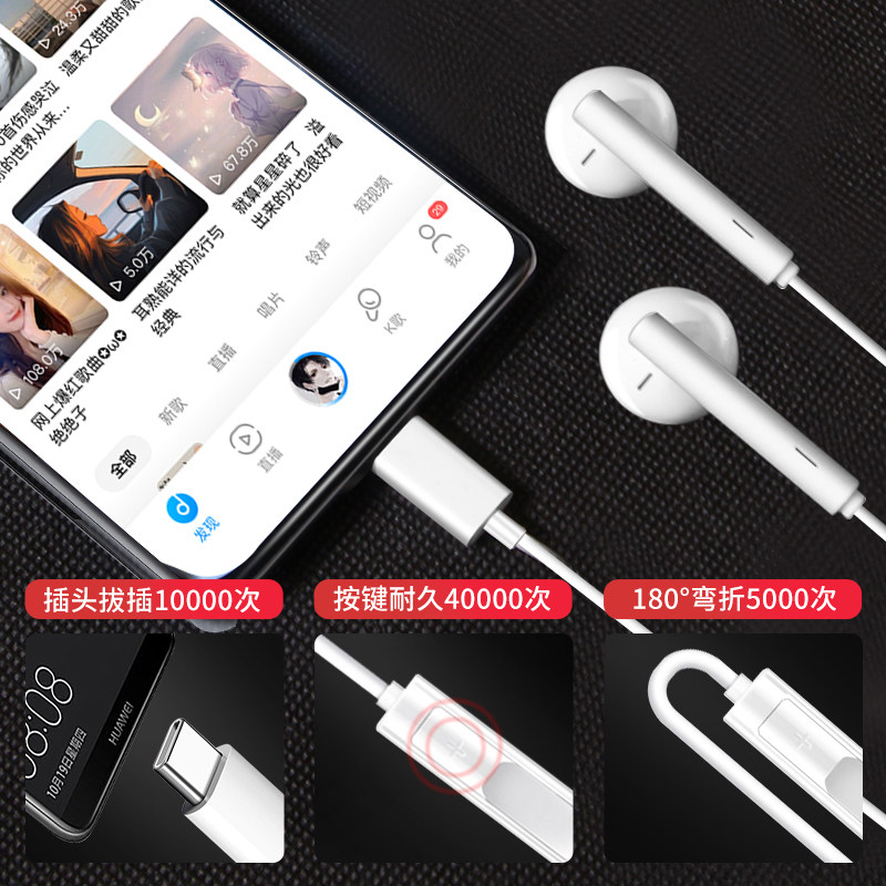 Huawei headphones typec original wired headphones p40 p40 p30pro Mate30 Mate30 20 10 nova5 6 7pro phone special wire controls