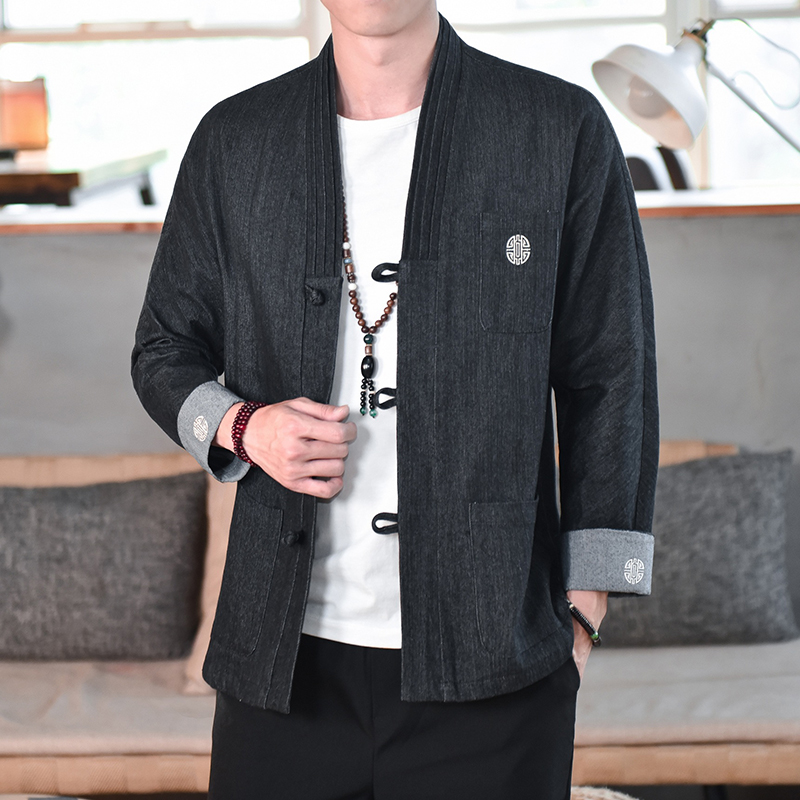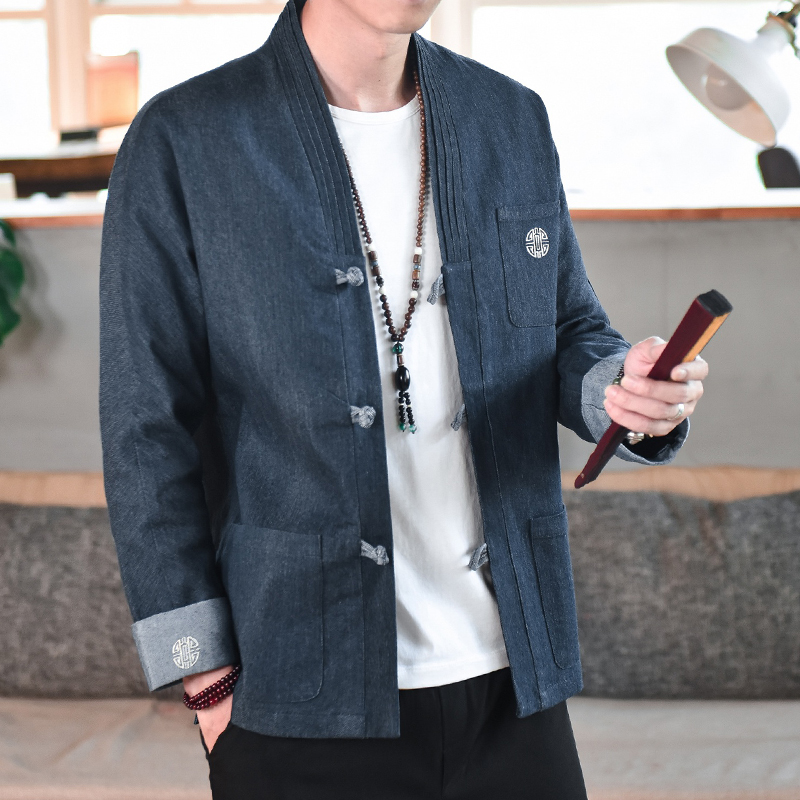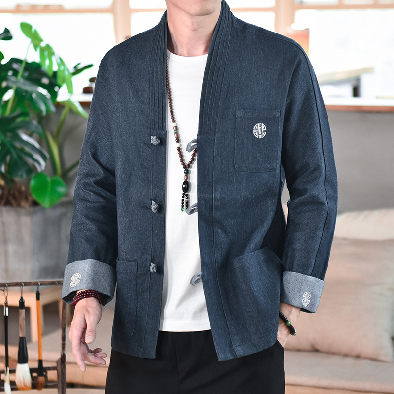 Tang Dress Denim Jacket Men's Spring Autumn China Wind Han Suit Men's Clothing Embroidery Casual Tide Card Jacket Men Loose Trend