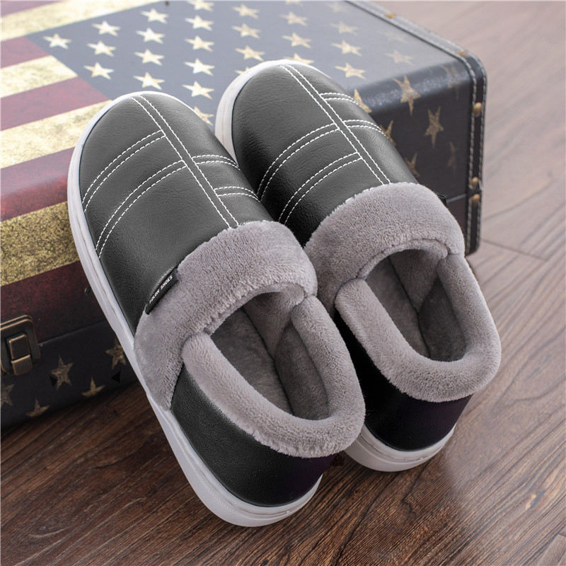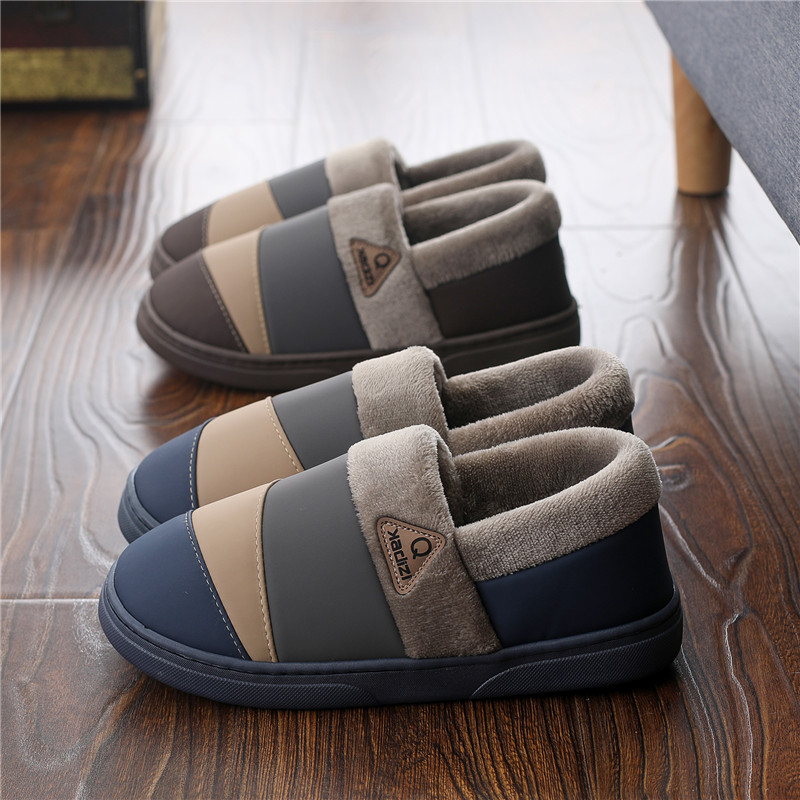 Large size men's cotton slippers autumn and winter 46 warm home 47 non-slip home bag with plush plush cotton shoes for men