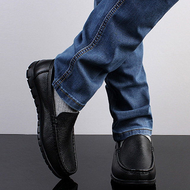 Leisure leather shoes male fur spring new man middle-aged daddy shoes soft soles soft soles of lazy shoes man