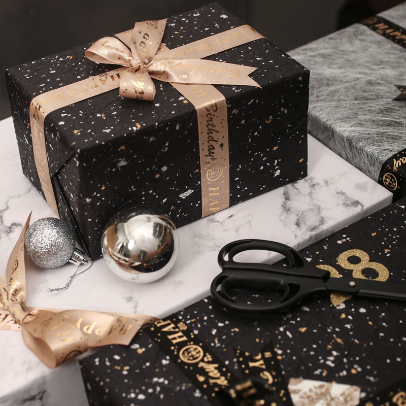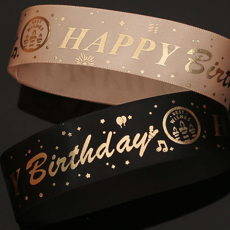 happy birtuday Bronzed ribbon Birthday Ribbon Printed Happy Birthday Ribbon Gift wrapping Ribbon Black