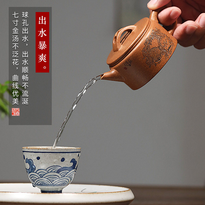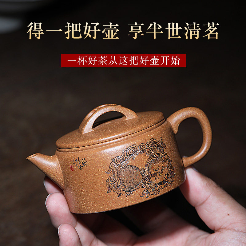 Famous pot Qiuyue Yixing purple clay pot multicolored mud famous pure handmade Ming-style small Han tile kung fu teapot household