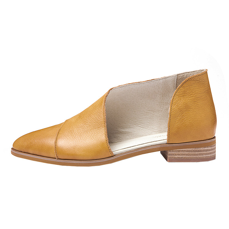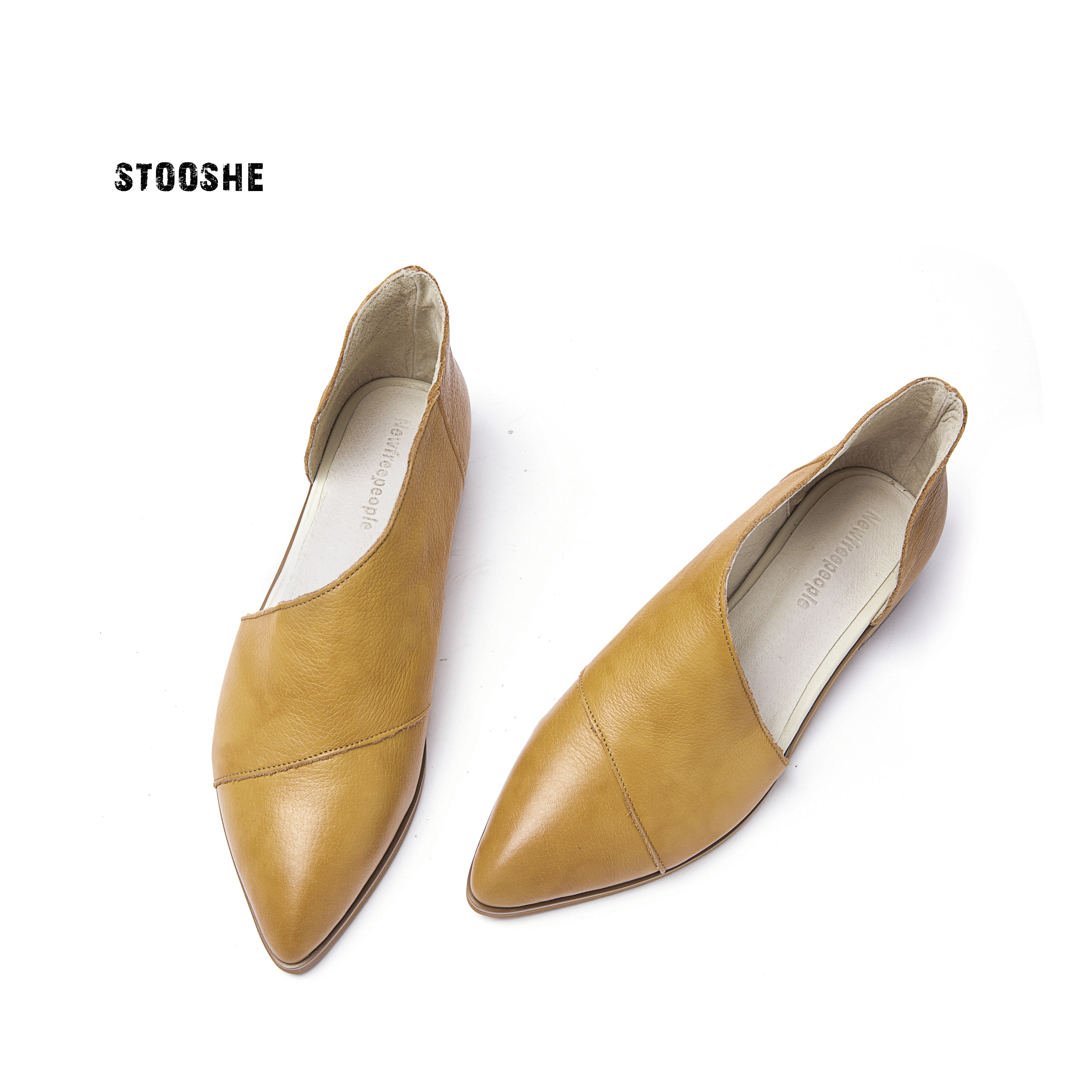 Clearance cut size 198 comfortable pointed toe flat side open deep mouth single shoe two-color oil wax leather low heeled women's shoes