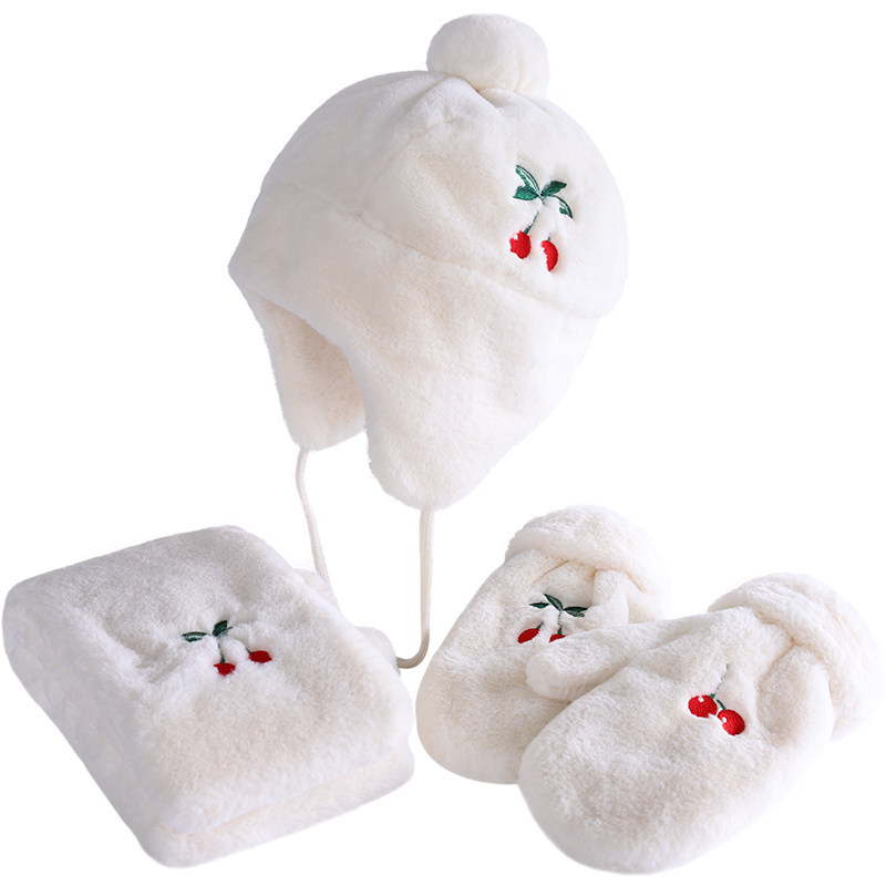 Hat scarf gloves three-piece set of women's winter Korean version of the tide student wild simple plush embroidery