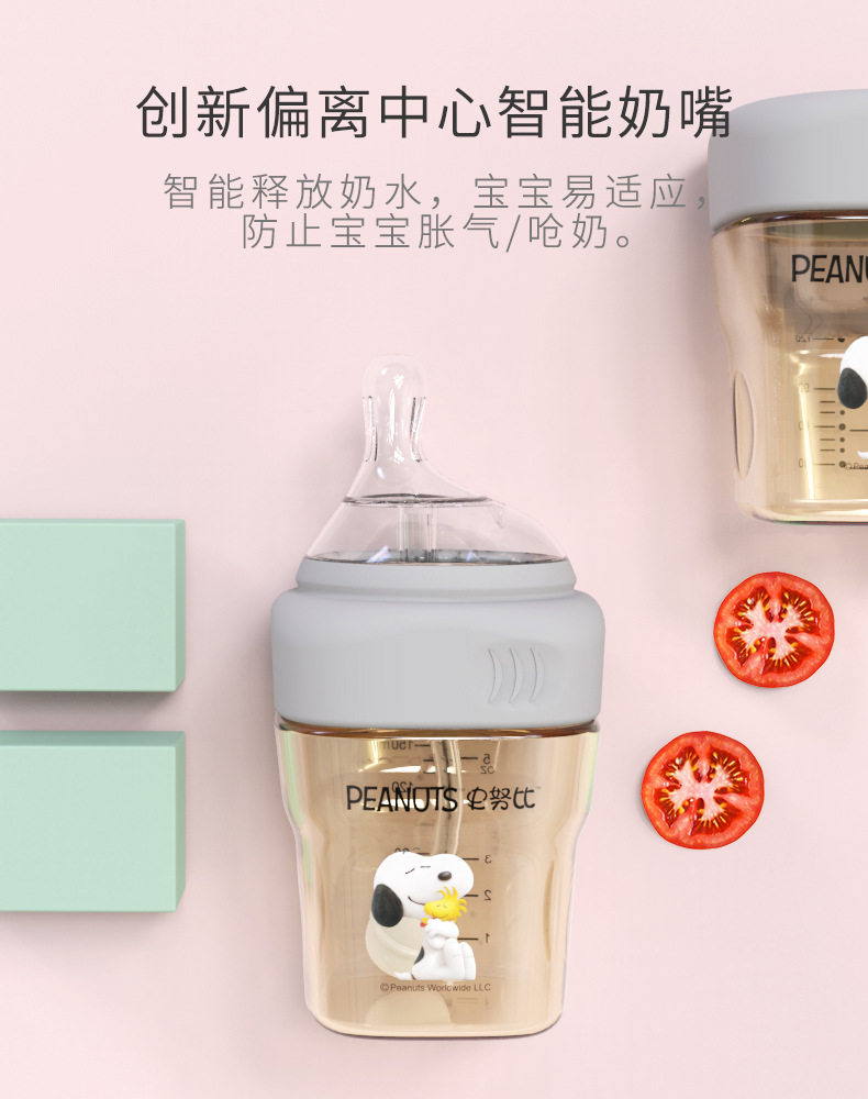 SNOOPY Snoopy Snoopy square bottle creamy original partially centered liquid silicone new birth anti-inflation gas