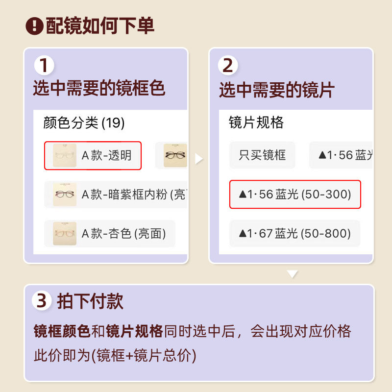 Section A-Tea Frame Inner Powder (Frosted) Section A-Dark Tea (Glossy) Section A-Transparent (Glossy) Section A-Frosted Black Section A-Apricot (Glossy) Section A-Rice in Black Frame (Bright) side) A section-