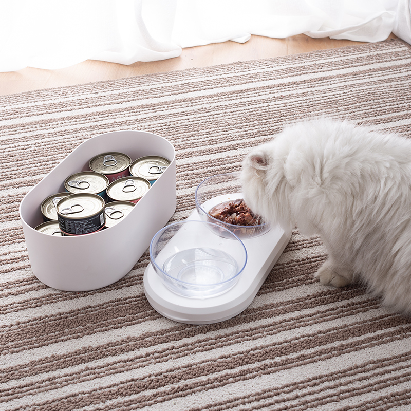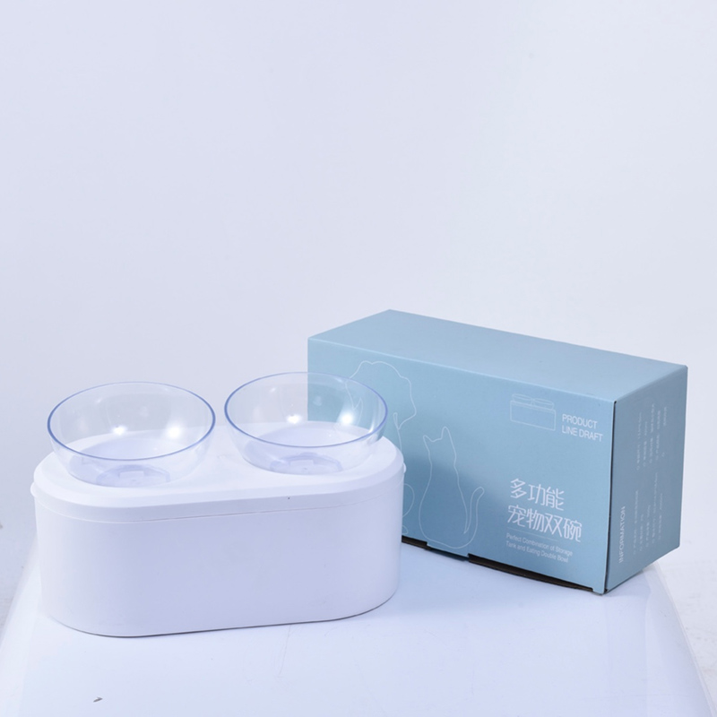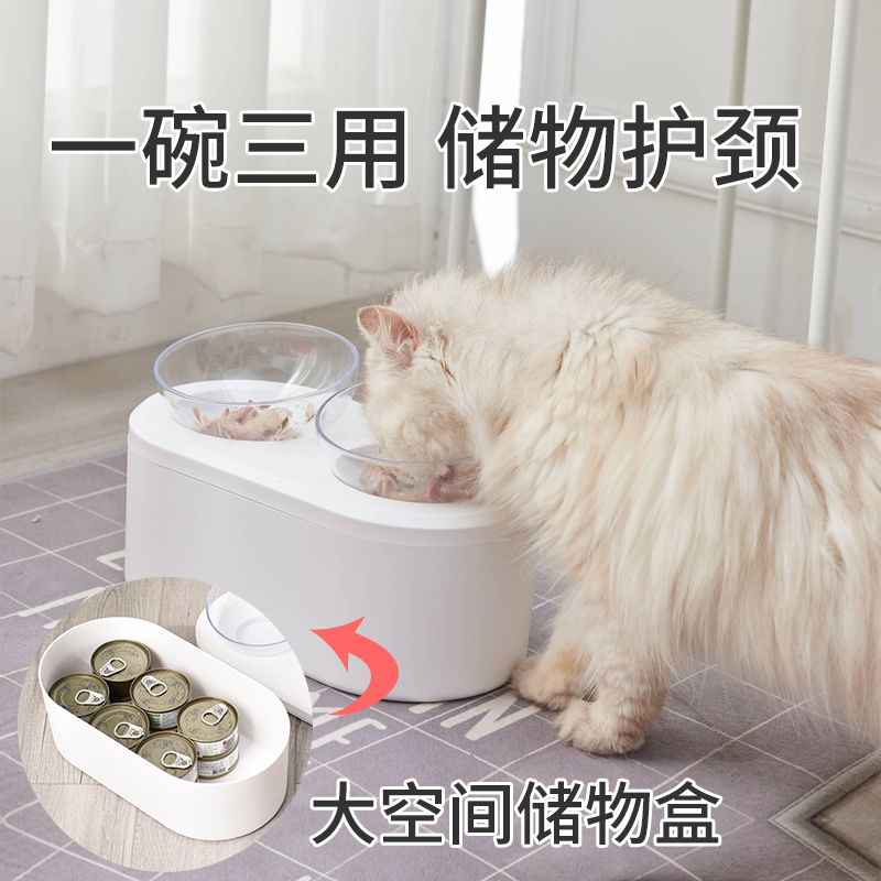 Cat bowl transparent double bowl protection cervical spine multi-function food storage cat food basin dog tilt dog basin dog bowl cat supplies