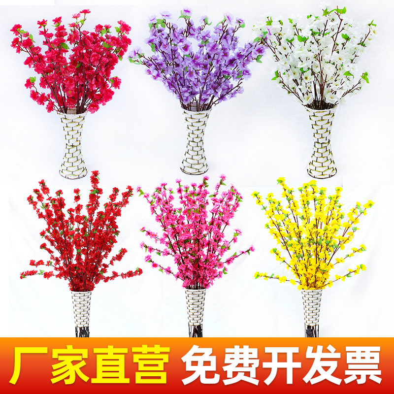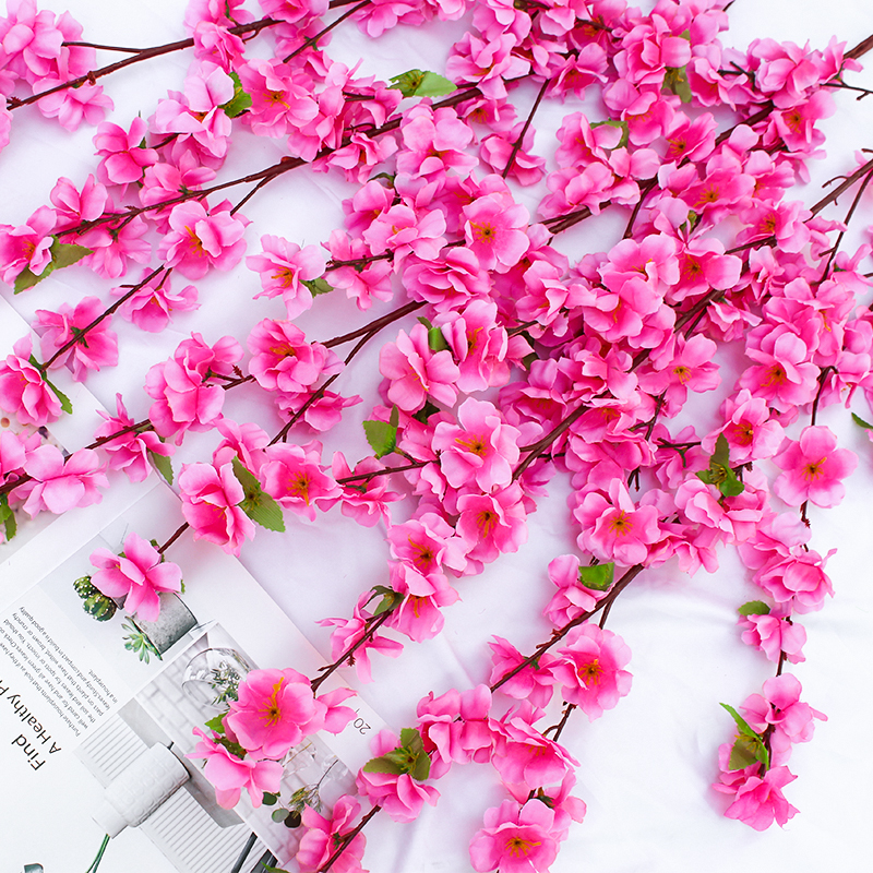 Purple and yellow 120 cm ultra-dense pink peach blossom branches (10 branches) 60 cm pink peach blossom branches (10 branches) 60 cm rose red peach blossom branches (10 branches) 60 cm big red peach blossom branches