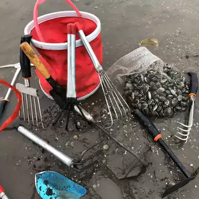 Small shovel medium stainless steel pointed shovel 5 teeth beach rake (color random) four clam rake clam rake extended four clam clam rake extended steel handle four tooth rake wooden handle rail steel tip shovel wooden handle rail steel square shovel primary color steel handle dual use