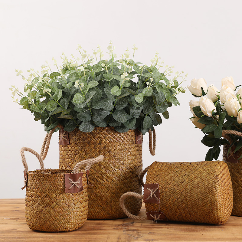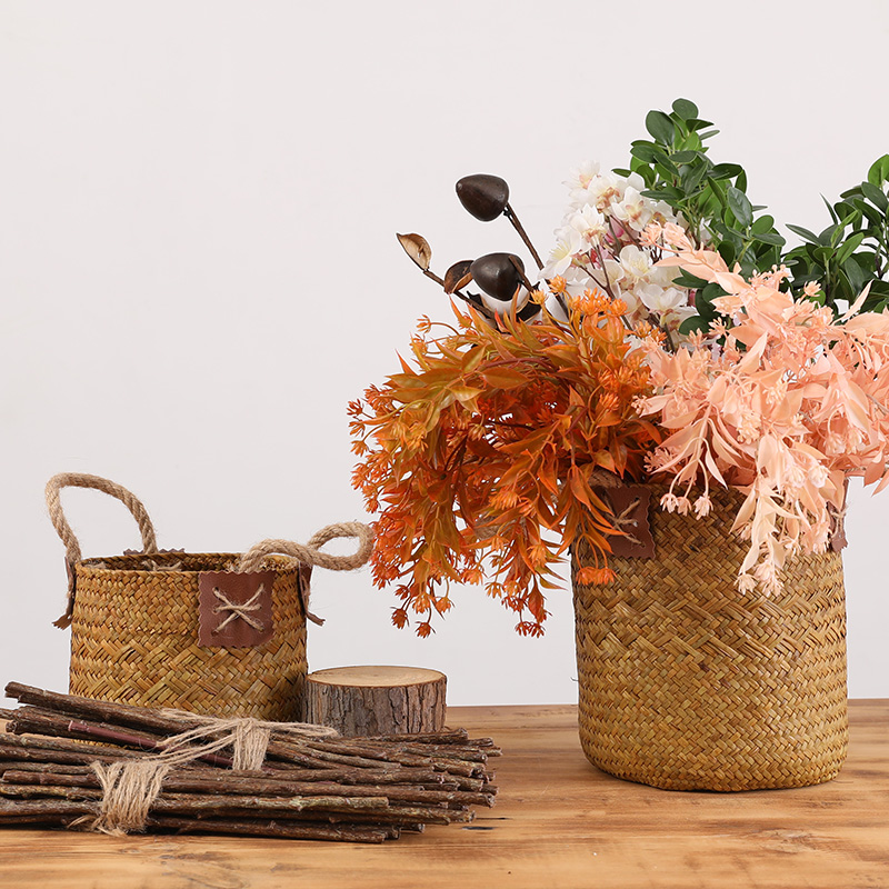 Tai Huan Tian Garden Handmade With Rope Rattan Chiche Basket Round Sea Grass Basket Home Indoor Tabletop Decoration Inserts Flower Basket Pendulum