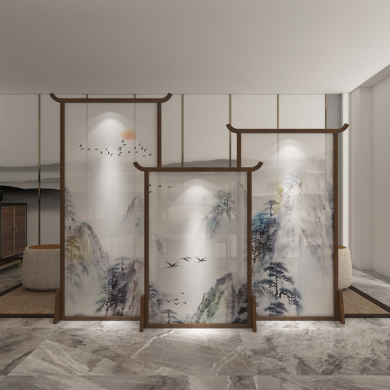 New Chinese Screen Solid wood partition Xuanguan Living room Tea Room Hotel Feng Shui Decoration Blocking Door Brief about modern seat screen