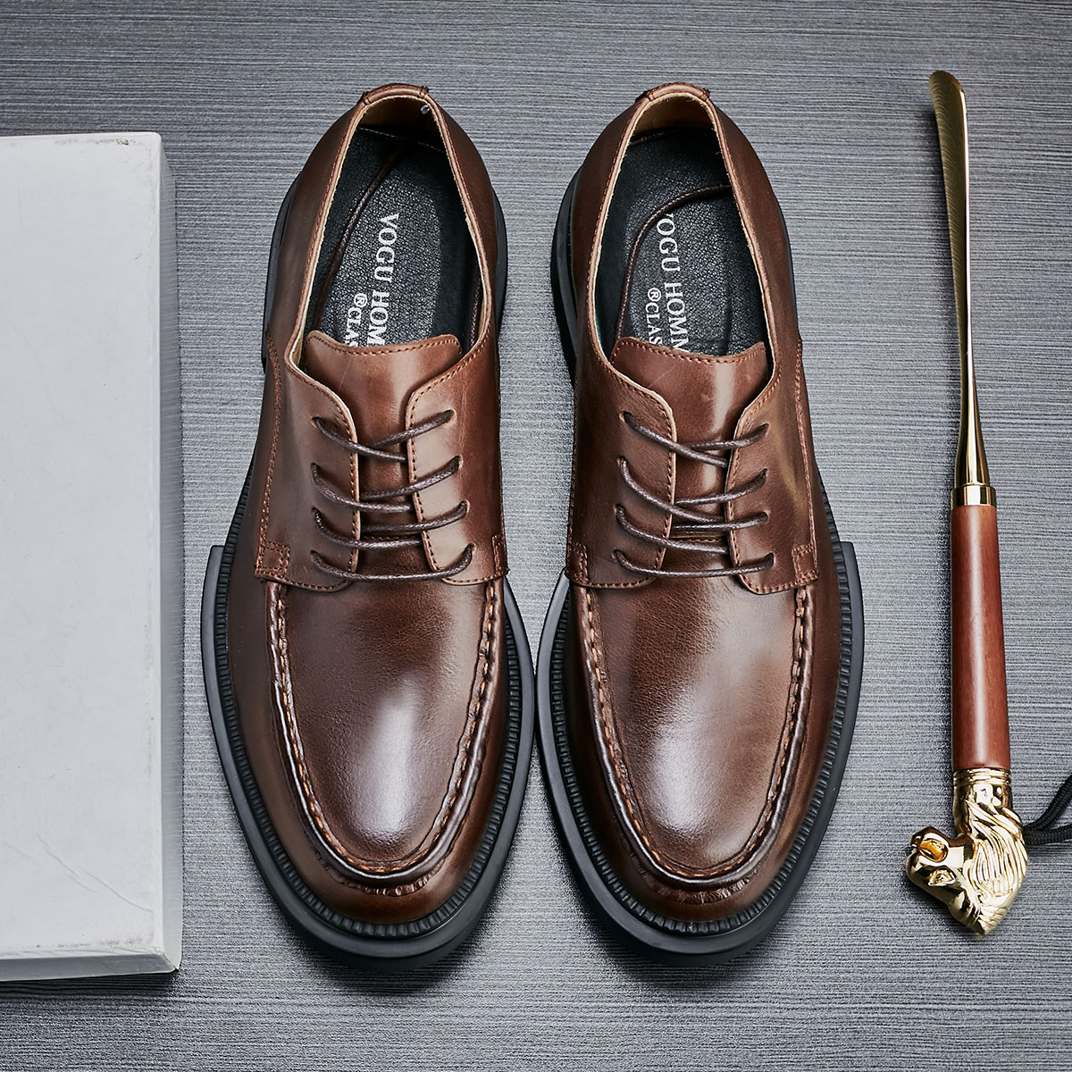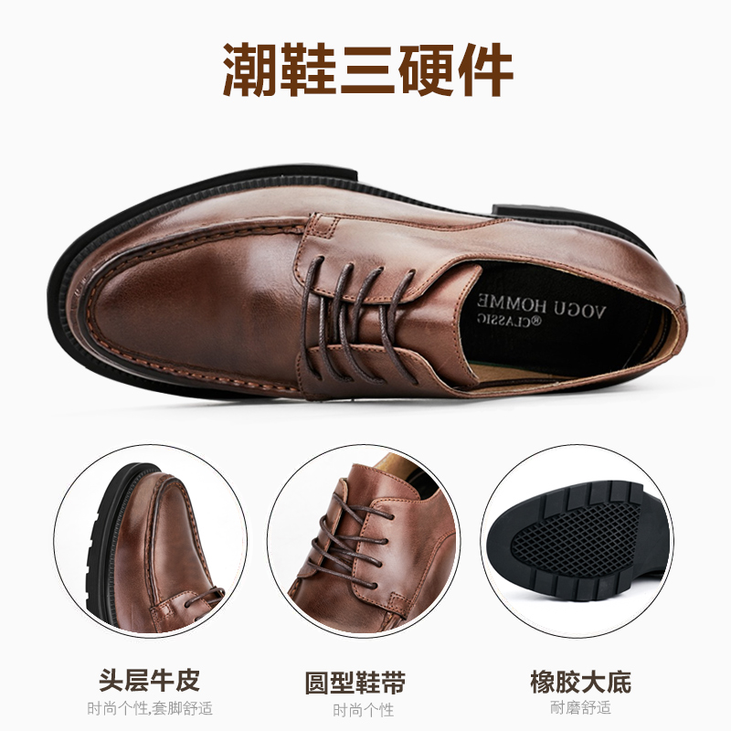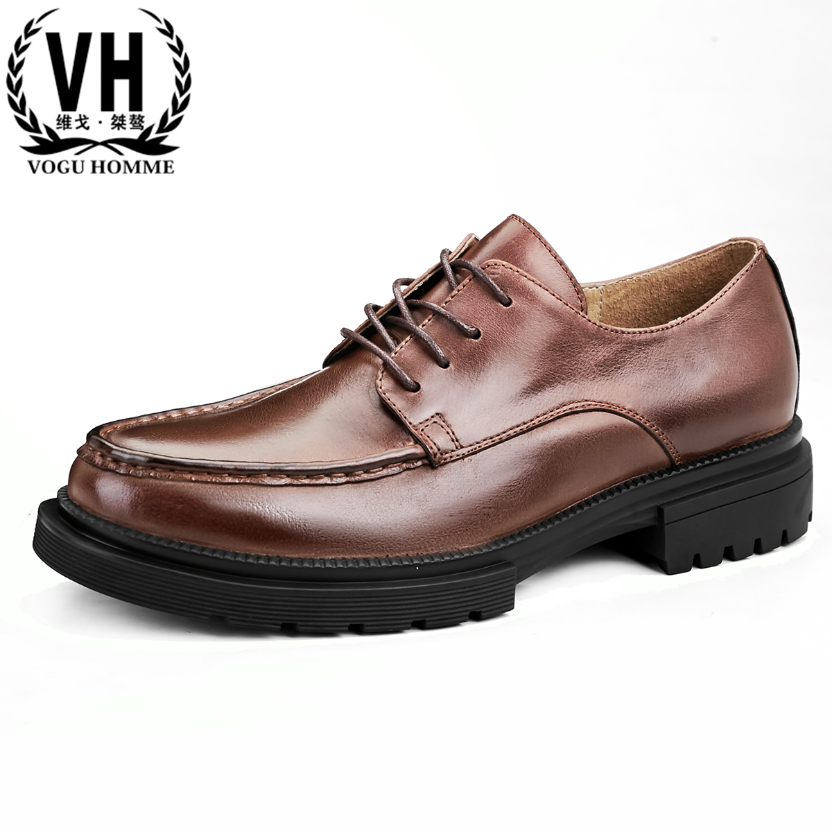 Leather shoes men's autumn new business casual shoes thick-soled fashion tooling shoes lace-up breathable small leather shoes youth trend