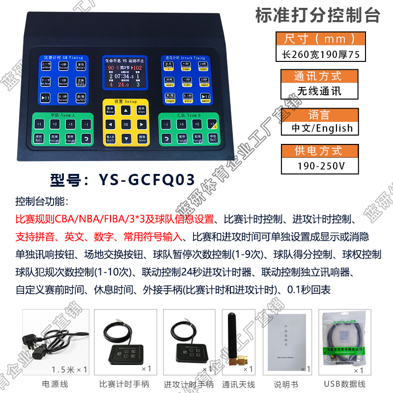 Professional basketball referee scoring console linkage 24-second offensive countdown scorer card scorer wireless