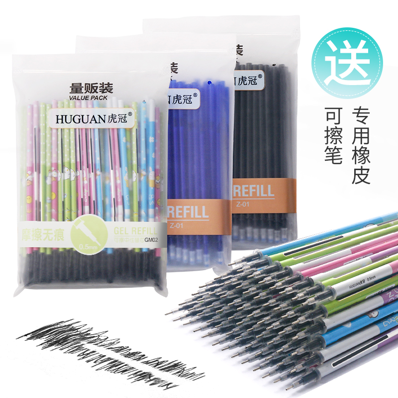 Bagged erasable refill Full needle tube 100 crystal blue carbon black 0 5mm hot grinding erasable neutral refill 3-5 grade school students erasable bullet head 0 38 Magic erasable refill