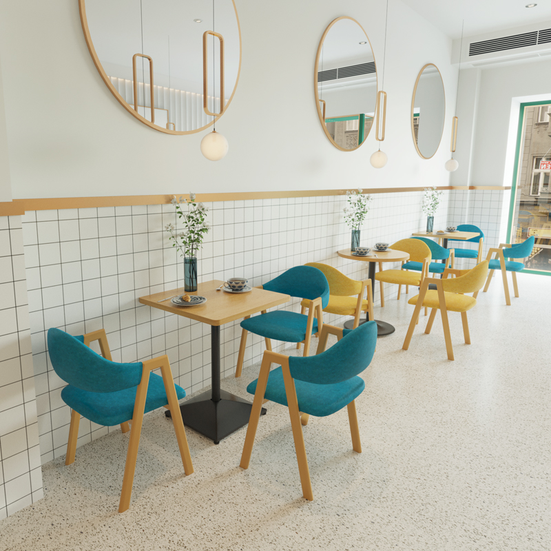 Peacock blue card seat yellow card seat white card seat color custom-made square table round table long table iron art A chair blue iron A chair yellow iron A chair white