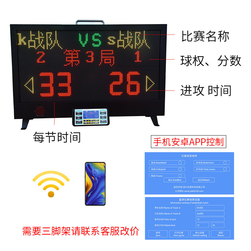 Basketball game mobile phone wireless control LED professional electronic scoreboard portable scorer 24 seconds countdown timer