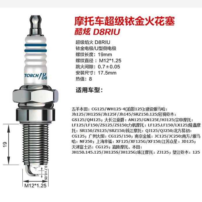 Locomotive Torch Iridium Spark Plug 110 125 Scooter A7TC 125 Men's Car D8TC B7TC Fire Mouth